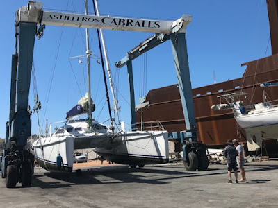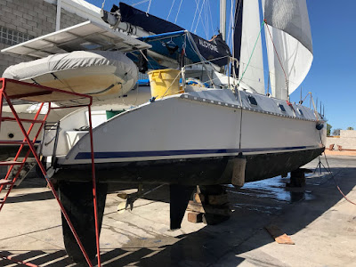 At 16h00, 12 days after our decsion in a remote Baja anchorage , our boat is in safety on a dry dock in Mexico and we are back home, we ll cruise again after september...