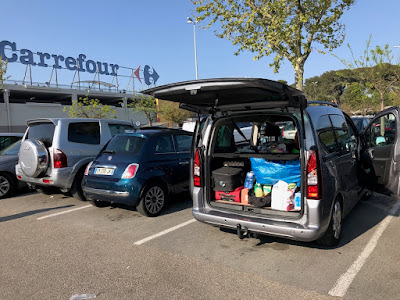 The drastic french measures against the covid-19 forbid our friend Daniel to pick us up with our car at Nice airport...This is a good thing for Jean Philippe, An "Uber" guy who bring us to Daniel's home in Auribeau; we get our car to drive back home with a long stop on the way to Carrefour Antibes where we fill the empty space of the car with all food we can ...