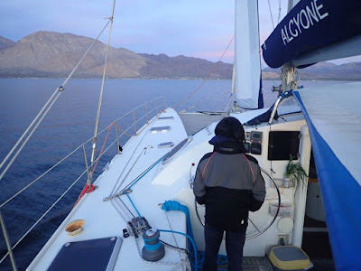 On 26 march we have almost 300 mile to go facing a dominant North wind, but we have a bit of time, a fast boat, and Salvador from PUERTO PENASCO shipyard can lift ALCYONE anytime...no reason to tack in a consistent northwind;