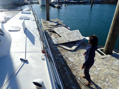 PUERTO PENASCO is a fishing harbour, with the good and bad things connected...No welcome dock and Helena has to jump on a 30 cm thick guano covered dock to tie ALCYONE. Fortunatly , we are lifted by the shipyard ASTILLEROS CABRALES a couple of hours later.